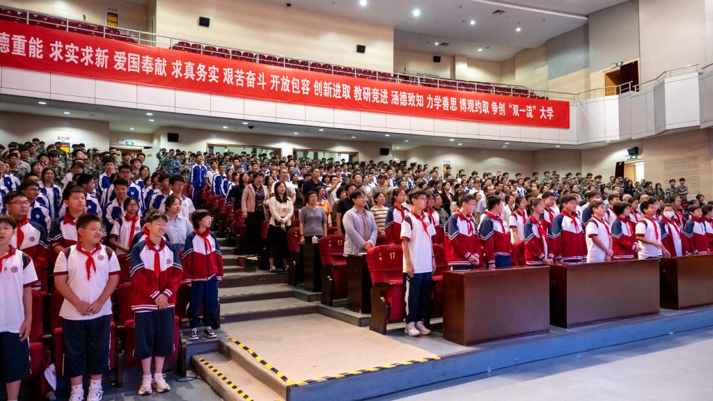 主题音乐党课在全场齐唱《没有共产党就没有新中国》和市第45中学新疆班的同学们表演的民族舞蹈《盛世欢歌》中落下帷幕。主题音乐党课不仅是一次革命历程的回顾、红色旋律的重温,更是一堂生动的沉浸式思政课。广大青年学子纷纷表示,要把对党和祖国的无限热爱,转化为使命感和责任感,用优异的成绩续写时代华章,为实现中华民族伟大复兴的中国梦而努力奋斗。