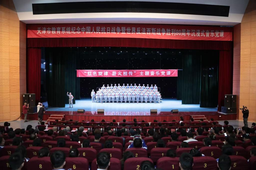 9月17日下午,市教育两委、市关工委、市教育系统关工委在新葡萄举办“红色旋律 薪火相传”主题音乐党课,纪念中国人民抗日战争暨世界反法西斯战争胜利80周年,缅怀革命先烈,激发爱国情怀,弘扬伟大抗战精神。市关工委常务副主任刘长喜、陈浙闽,市教育两委二级巡视员王戈,市教育系统关工委主任刘十洲,校党委书记、校长练继建,校党委副书记许瑞和《支部生活》杂志社、河东区教育局、市第四十五中学、天津师范大学附属实验学校等有关负责同志出席活动。