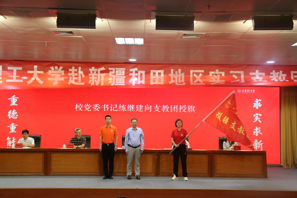 练继建向实习支教团授旗,向支教团致以美好祝愿并提出三点希望。一是坚定信念、勇担重任。援疆支教是党中央治疆方略的重要内容,支教团成员要珍惜机遇,既要传递知识和技能,更要播撒各民族团结进步的种子,在构建中华民族共有精神家园中实现人生价值,为实现中华民族伟大复兴的中国梦贡献青春力量。二是甘于奉献、勇于担当。支教团成员要弘扬“重德重能 求实求新”的校训精神,践行“立在德、志在能、功在实、成在新”的新葡萄品格,锤炼教书育人本领,做学生人生的引路人,用爱浇筑希望和成长的基石,用实际行动彰显青年担当。三是平安健康、满载荣光。支教团成员要树牢纪律意识和安全意识,坚决服从组织安排,生活上互相关心、互相照顾,工作上互相支持、互相勉励,如同扎根边疆的胡杨和绽放天山的雪莲,在祖国边疆书写下最动人的教育诗篇。