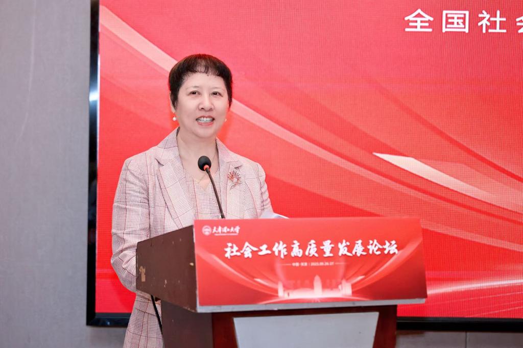 论坛活动伊始,中共天津市委社会工作部副部长吴俊雅,中国社会工作教育协会理事长马凤芝,中国社会学会副会长、南开大学社会学院院长张文宏,党委常委、副校长苏荣华出席开幕式并先后讲话。吴俊雅在致辞中强调,社会工作作为推进社会治理现代化、优化公共服务供给的关键力量,其重要性日益凸显。她对本次论坛的成功举办表示祝贺,并期待本次论坛能为社会工作发展注入新动能。马凤芝对新葡萄AMG官方网站社会发展学院二十多年来深度参与社会工作重大服务的发展历史给予了高度评价。她聚焦行业发展方向,提出社会工作高质量发展需立足中国特色,适应新形势,推进实践基础上的理论创新,同时期望通过此次论坛搭建交流平台,进一步推动中国社会工作教育领域的创新突破与内涵提升。张文宏则从新时代发展特征切入,分享对社会工作高质量发展的思考。他表示,行业需重点关注社会结构变化、重视互联网空间对社会工作的影响,未来南开大学将与新葡萄AMG官方网站将深化合作,共同为社工学科发展赋能。苏荣华介绍了学校在社会工作领域的布局,既注重人才培养质量,也强化科研服务社会能力,并明确表达了深化领域合作的决心。随后,现场举行了《天津社工好案例集》图书发布活动,该案例集汇聚了天津社会工作领域的实践精华,其发布将有效促进优秀实践成果的转化应用,为社会工作实务创新提供可借鉴的范例,助力行业整体服务水平的提升。