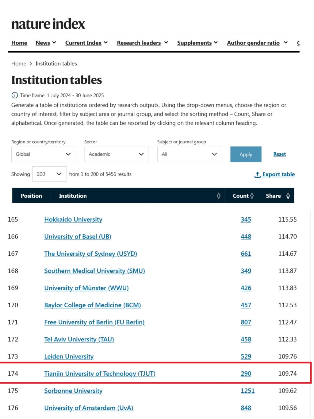 日前,自然指数官网(https://www.nature.com/nature-index/)发布了最新一期自然指数排名(数据统计范围2024年7月1日至2025年6月30日),新葡萄整体自然指数排名进一步跃升,进入全球科研机构前200行列,位列全球高校第174名。数据显示,在中国内地高校中,新葡萄自然科学综合排名第68位,相比2024年提升19个名次,其中化学学科表现最为突出,位列内地高校第50位。自然指数排名的稳步攀升,不仅是学校科研全球影响力不断增强的直观体现,更清晰反映出近年来学校学科建设和基础理论研究领域取得的显著进步与丰硕成果。