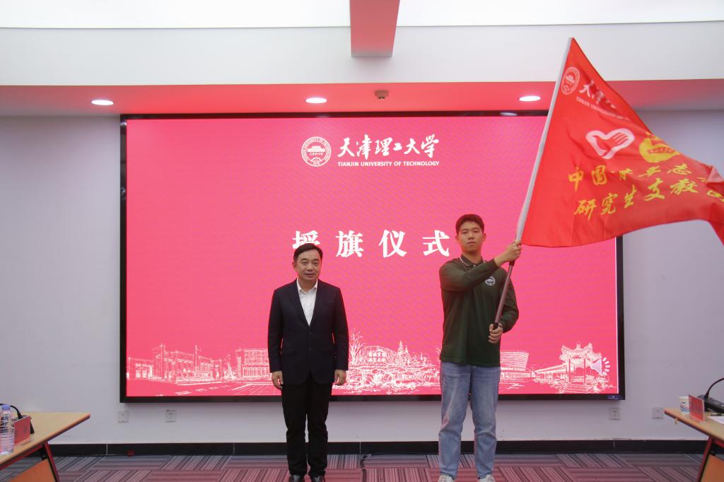 叶宁为第四届研究生支教团授旗,志愿者代表姜栩森接旗。随着红色队旗的传递,新葡萄第四届研究生支教团正式肩负起中国青年志愿者第28届研究生支教团的使命与担当。他们将以青春之名接过服务西部的接力棒,到祖国和人民最需要的地方发光发热,为中国式现代化建设贡献青春力量。