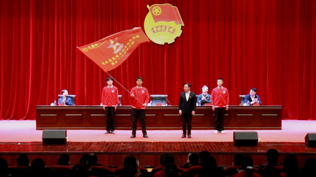 叶宁为“青马工程”第二十二期培训班学员代表颁发徽章并授旗。