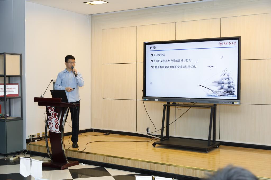 申振宇作题为“船舶柴油机热力性能仿真与优化”的学术报告。该研究以船舶柴油机工作原理为基础,先通过模块化建模构建出柴油机热力性能模型,完成验证后,采用智能优化算法实现船舶柴油机的单目标与多目标优化。
