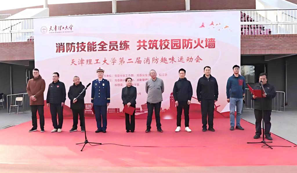 11月5日,学校第二届消防趣味运动会在田径场拉开帷幕。校党委副书记许瑞,西青区消防救援支队副支队长徐阳出席活动。党委安全工作部、工会、党委学生工作部、党委教师工作部、后勤管理处、校团委、体育教学部、各学院相关负责同志参加活动。