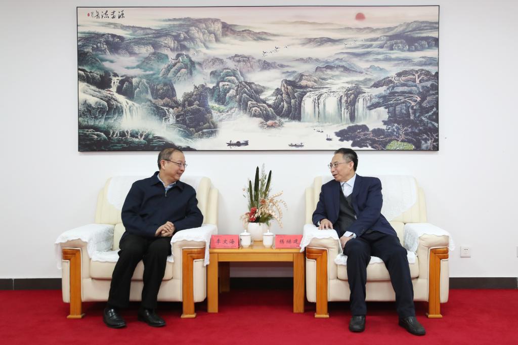 会前,李文海会见了校党委书记、校长练继建。双方就民建市委会与学校的深入合作进行了亲切交流,希望双方进一步务实合作,充分发挥统一战线强大法宝作用,共同为推动学校“双一流”建设和天津经济社会高质量发展贡献统战力量。