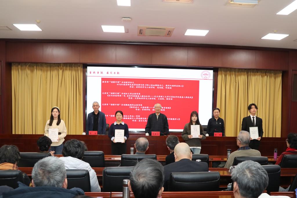 会上,关工委领导为“读懂中国”活动中获得教育部最佳征文奖的材料科学与工程学院,以及获得天津市教育系统微视频、征文作品特等奖和一等奖的管理学院、计算机科学与工程学院、语言文化学院颁发了证书。
