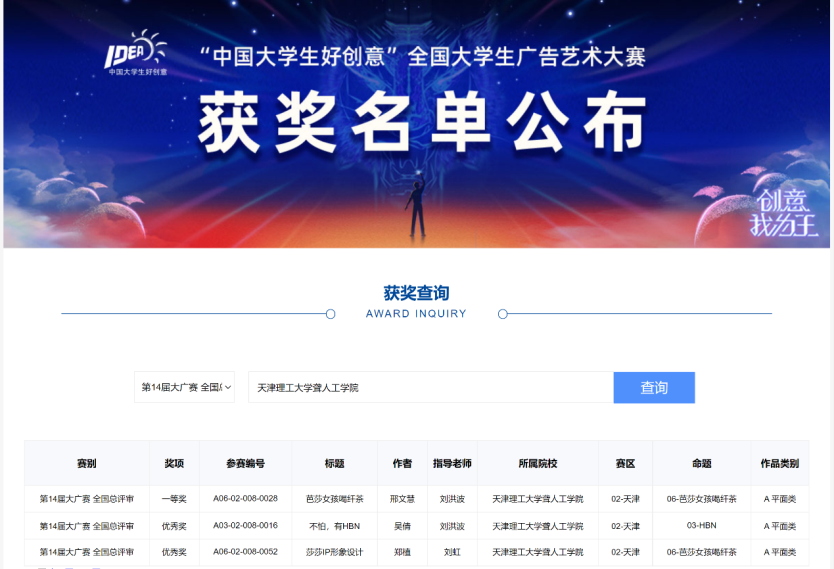 近日,第14届“中国大学生好创意”全国大学生广告艺术大赛圆满落幕,聋人工学院刘洪波老师指导2021级艺术专业研究生邢文慧创作的作品《芭莎女孩喝纤茶》在激烈的角逐中脱颖而出,荣获全国总决赛一等奖。另有两项作品获得国家级优秀奖。