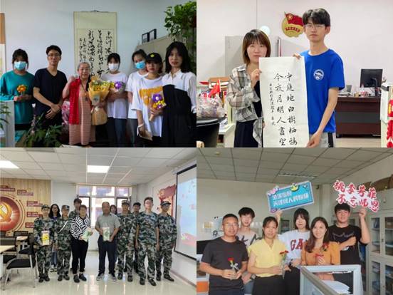 一样明月两样情怀,各学院还通过手工扎花、书法绘画以及召开座谈会等方式欢庆“双节”。