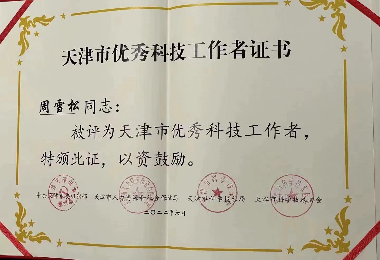 近日,天津市委组织部、市人社局、市科技局、市科协下发《关于评选表彰天津市优秀科技工作者(标兵)的通知》(津科协〔2022〕25号),新葡萄电气工程与自动化学院周雪松教授获批“天津市优秀科技工作者”。