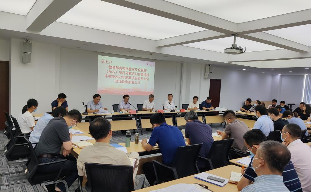 会上,党委安全工作部负责同志对教育部高等学校实验室安全检查项目(2022年)进行任务分解说明,教务处及科学技术处负责同志分别对教学实验室、科研实验室迎接市教委2022年度高校实验室安全现场检查工作进行部署安排。