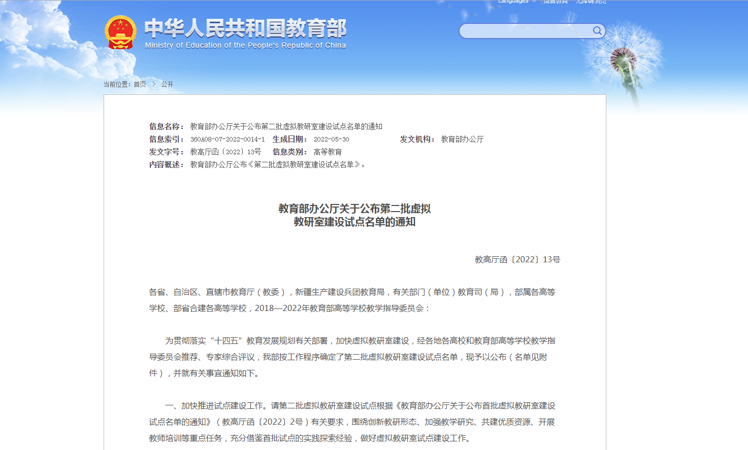 加强基层教学组织建设,全面提高教师教书育人能力,是推动高等教育高质量发展的必然要求和重要支撑。2021年7月教育部启动虚拟教研室试点建设工作,依托现代信息技术探索信息化时代新型基层教学组织建设的新思路、新方法、新范式,截至目前已公布两批建设试点名单。学校将以此次获批教育部虚拟教研室建设试点为契机,加大培育力度,推动各基层教学组织运用现代信息技术创新教研形态、加强教学研究,锻造一批高水平教学团队,培育一批教学研究与实践成果,全面提升教师教学能力,推进本科人才培养高质量发展。