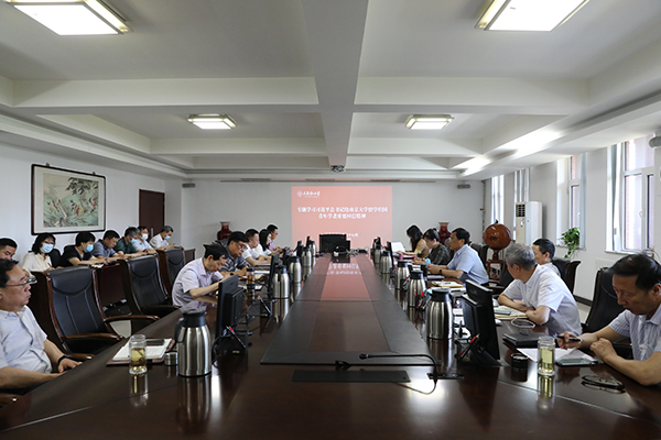 6月2日上午,校党委理论学习中心组(扩大)专题学习习近平总书记给南京大学留学归国青年学者回信精神及全市加强高校思想政治工作座谈会会议精神,校党委理论学习中心组成员、相关部门及学院主要负责同志参加学习。校党委书记刘东志主持会议并讲话。