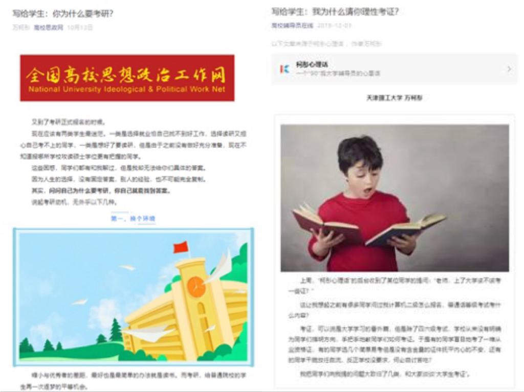 “柯彤心理话”系列新媒体平台(微信公众号、视频号、抖音号、小红书)原创百余篇《写给学生》系列思政网文,浏览量数十万;发布《大学生必读》系列短视频,用时代话语丰富思政教育的打开方式,与“00后”在互动中凝聚共识。多篇网文先后被学习强国、高校思政网、教育部中国大学生在线、高校辅导员在线发布。媒体平台负责人主持或参与委局级科研项目4项,先后在《高校辅导员》等期刊杂志上发表多篇学术文章,在第五届“全国高校网络教育优秀作品推选展示活动”中获得优秀奖。新冠肺炎疫情暴发初期,“柯彤心理话”第一时间正面发声,多篇文章被高校思政网等平台转发,受众遍布全国各高校达数万人。截至目前,“柯彤心理话”抖音粉丝2.4万,获赞34.2万,微信视频号累计播放量达10万。