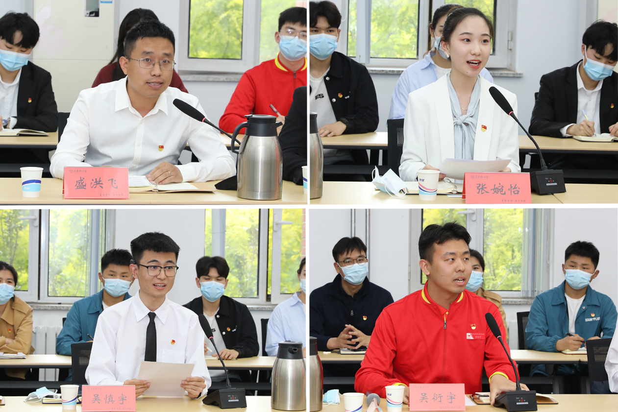 座谈会上,“天津青年五四奖章集体”获奖团队、市“两红两优”先进集体及个人、思政课教师、青马学员等8名师生代表结合自身工作和学习生活实际,围绕共青团组织育人职责、青年思想引领、思政课创新、科技创新引擎、红色基因传承等方面进行交流发言。