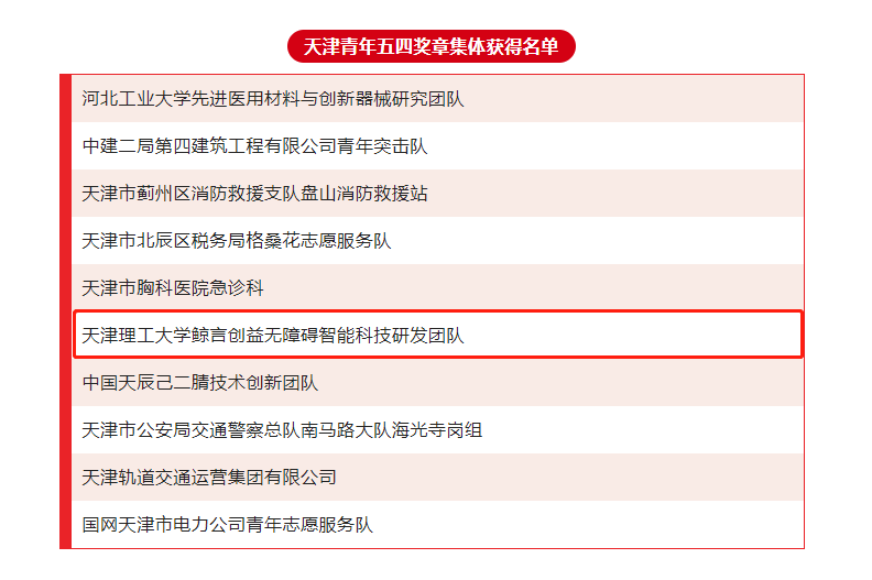 在五四青年节来临之际,“天津青年五四奖章”评选结果揭晓。团市委决定,授予60名同志“天津青年五四奖章”称号,授予10个集体“天津青年五四奖章集体”称号。作为全市教育系统2个获奖集体之一,新葡萄鲸言创益无障碍智能科技研发团队荣获“天津青年五四奖章集体”称号,实现学校在该奖项中“零的突破”。