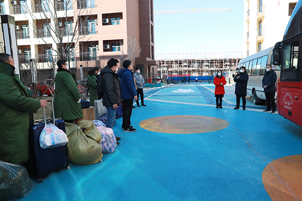 校党委副书记郭滇华带队赴宝坻区隔离点接回学校干部教师,宝坻区委常委、区委办公室主任、区委组织部部长李强,区商务局局长刘宝琦等负责同志在隔离点现场欢送老师们返校。学校为老师们准备了慰问品,全方位做好后勤保障,做到无缝对接,确保老师们平安顺利返家。