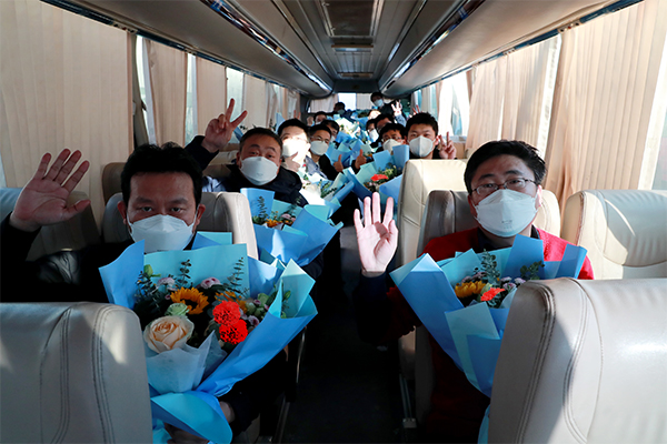 1月29日下午,校领导刘东志、练继建、郭滇华、杜长有、郑清春、魏东、张继东在学校迎接23名驰援津南抗疫干部教师凯旋。