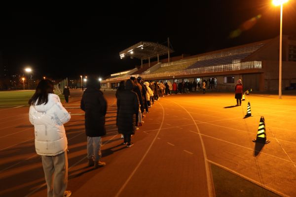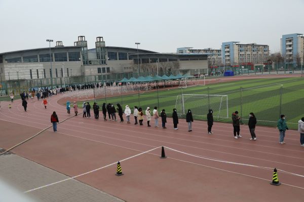 师生员工根据学校发出的指令,在规定时间到达体育场集合,跟随志愿者的引导前往检测地点,在进入等候区时进行身份核验、信息登记,现场志愿者耐心指导并做好记录。