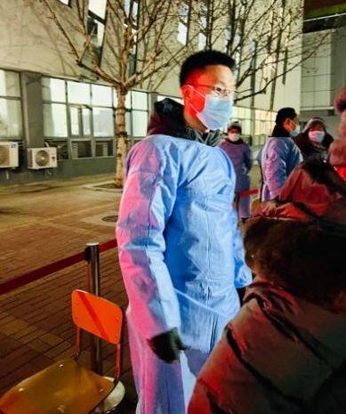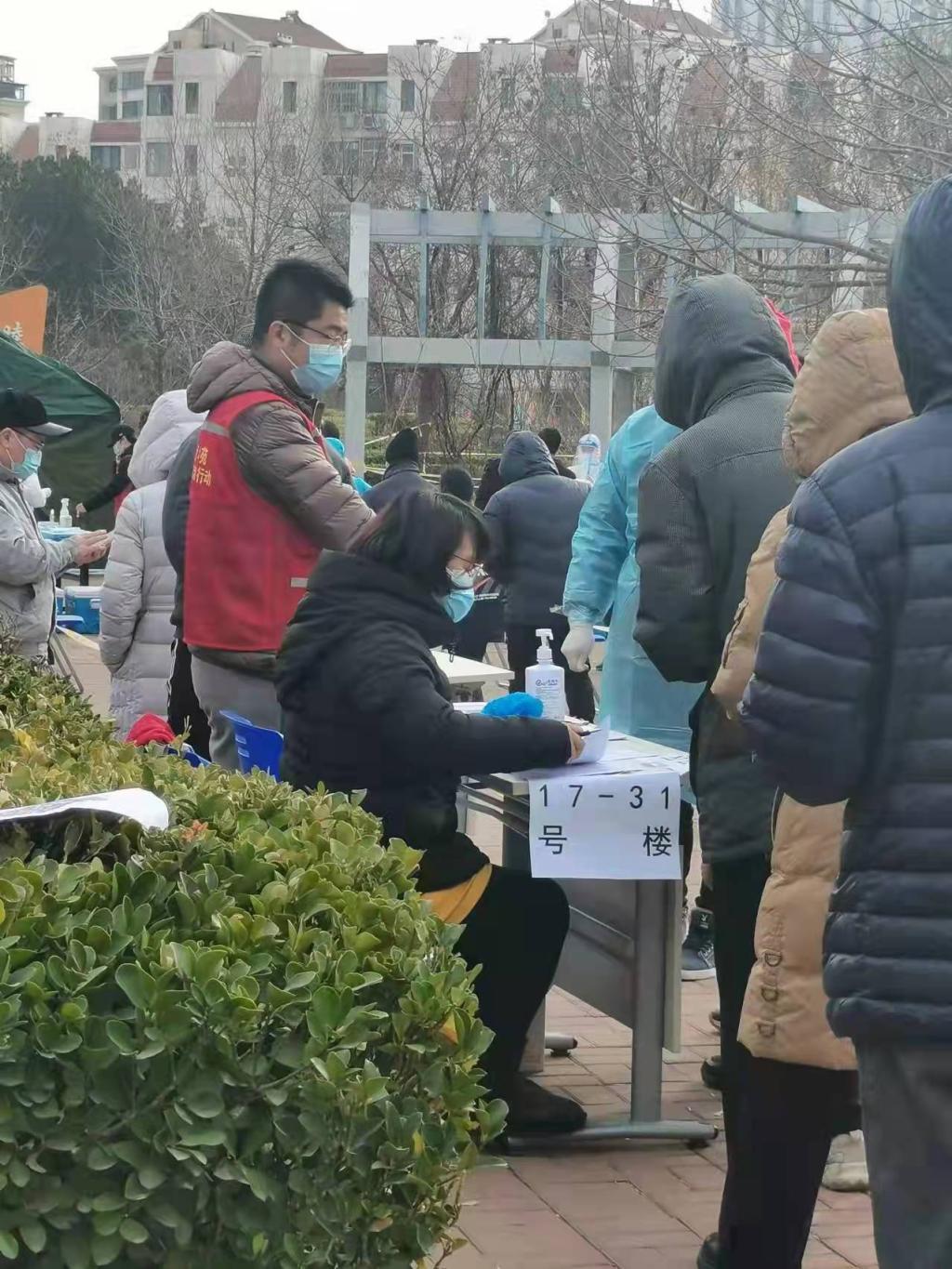 艺术学院摄影系教工党支部副书记崔博家住津南区海河教育园区仁恒滨河湾小区,也是这次疫情的防范区。1月8日,他第一时间与社区联系,主动前往社区居委会报到,积极参与社区集中培训,从16点培训、待命,18点开始上岗参与志愿服务直至9日凌晨3点。在凛冽的寒风中负责做好核酸检测入户通知、信息登录、秩序维护、健康码检查等工作。在长达12个多小时的志愿服务中,他从细致培训到一个一个上楼敲门通知,到有序组织筛查检测,解答居民的相关问题,协调社区、物业、居民之间的沟通,安抚排队居民的情绪,尤其是帮助老年人解决网络注册、二维码扫描、信息填报等问题,深深体会到我们中国共产党强大的基层动员能力和组织优势,更感动于众多党员群众在困难面前的团结与坚定。他说:“小区好多志愿者在寒冷的冬天连轴转,顾不上吃饭喝水休息,抓紧一切时间做好工作,我做的不算什么,大家都很辛苦。后面几天还会根据社区安排再去做好志愿服务,这是我们党员的份内之事。”