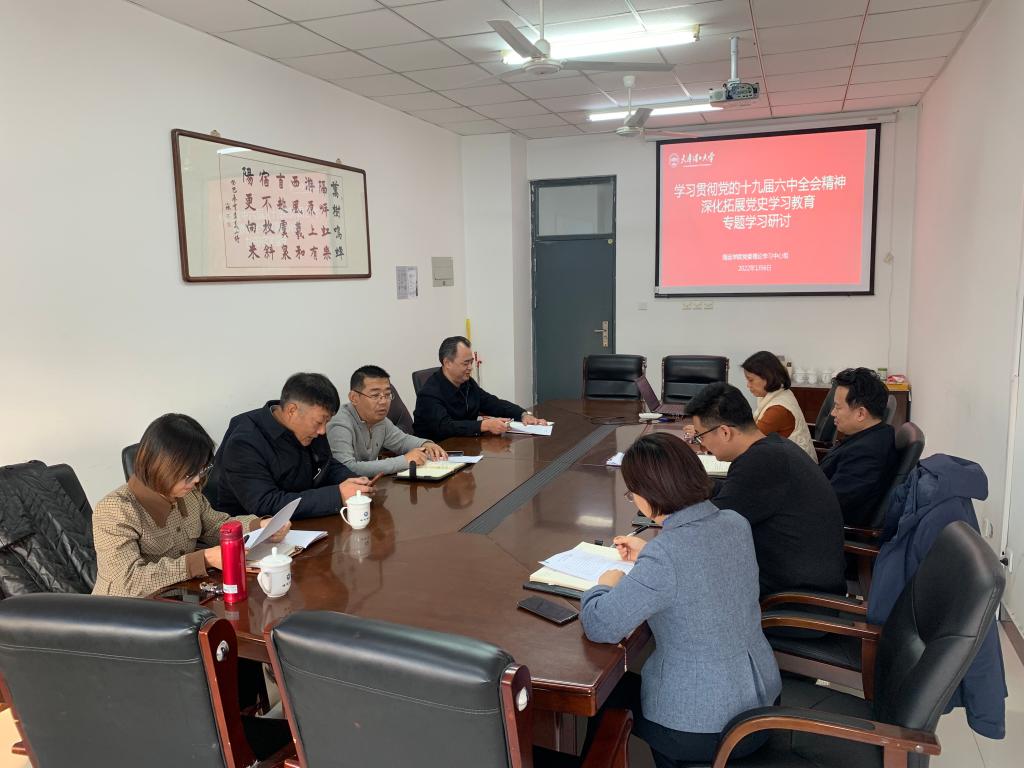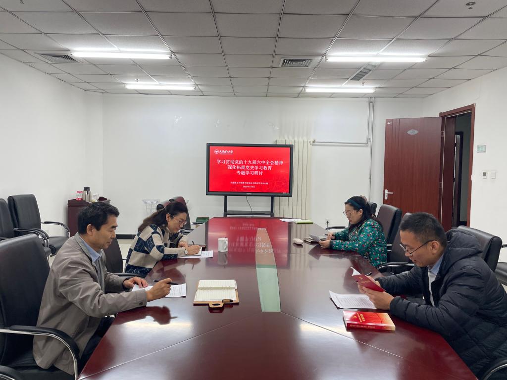 校院两级中心组成员在两天的专题研讨中,通过聆听靳方华教授专题辅导报告、个人自学、集体学习、交流研讨等方式,认真学习贯彻党的十九届六中全会精神,深刻领悟和把握全会的核心要义、科学内涵、精神实质、实践要求,切实把贯彻全会精神与本职工作相结合,与深化拓展党史学习教育相结合,深刻认识把握“两个确立”的决定性意义,增强“四个意识”、坚定“四个自信”、做到“两个维护”,牢记“国之大者”,不断提高政治判断力、政治领悟力、政治执行力。