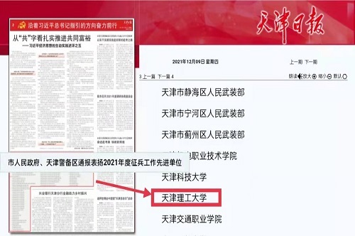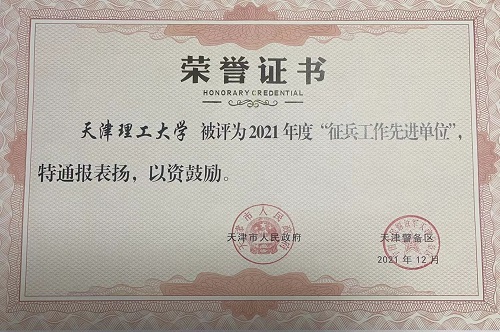近日,天津市人民政府、天津警备区通报表扬2021年度征兵工作先进单位,新葡萄荣获天津市2021年度“征兵工作先进单位”荣誉称号。