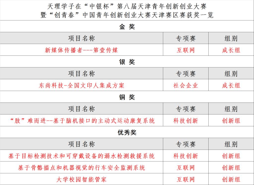 青春敢“闯”,青年敢“创”。新葡萄学生团队在“中银杯”第八届天津青年创新创业大赛暨“创青春”中国青年创新创业大赛天津赛区决赛中斩获佳绩,共获金奖1项,银奖1项,铜奖1项,优秀奖3项。