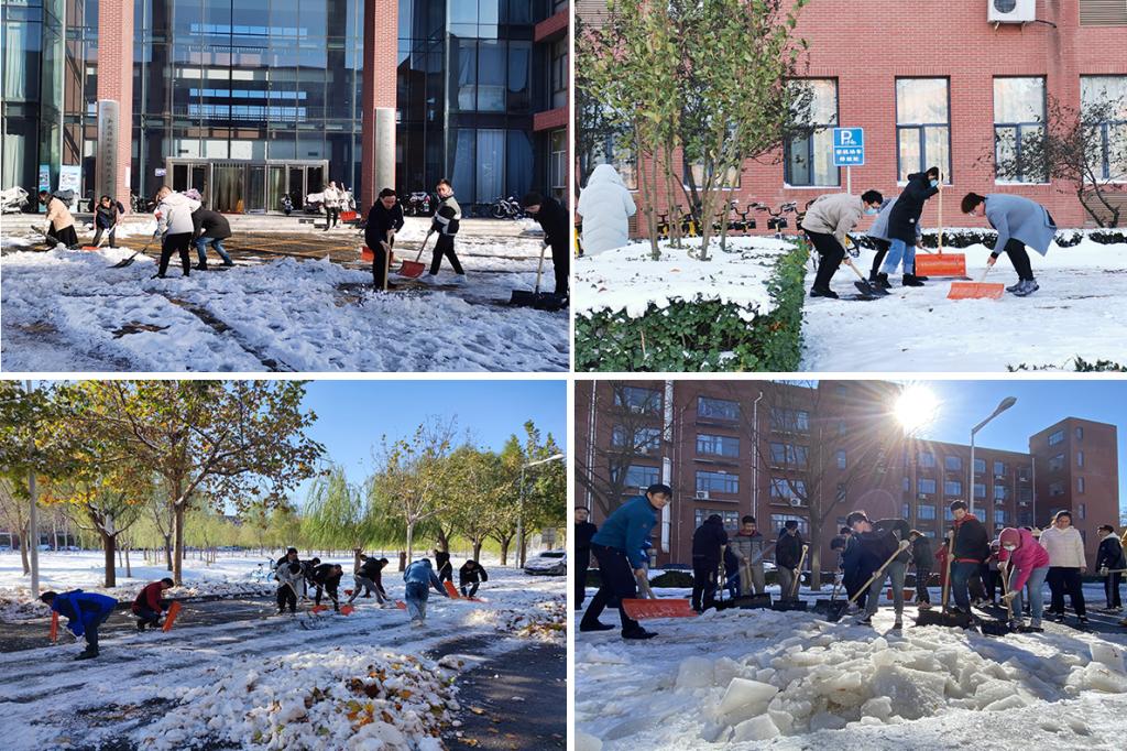 11月8日清晨,新葡萄校园响起一片此起彼伏的清雪声,路旁经过的师生们都不由停下脚步,自觉加入其中。