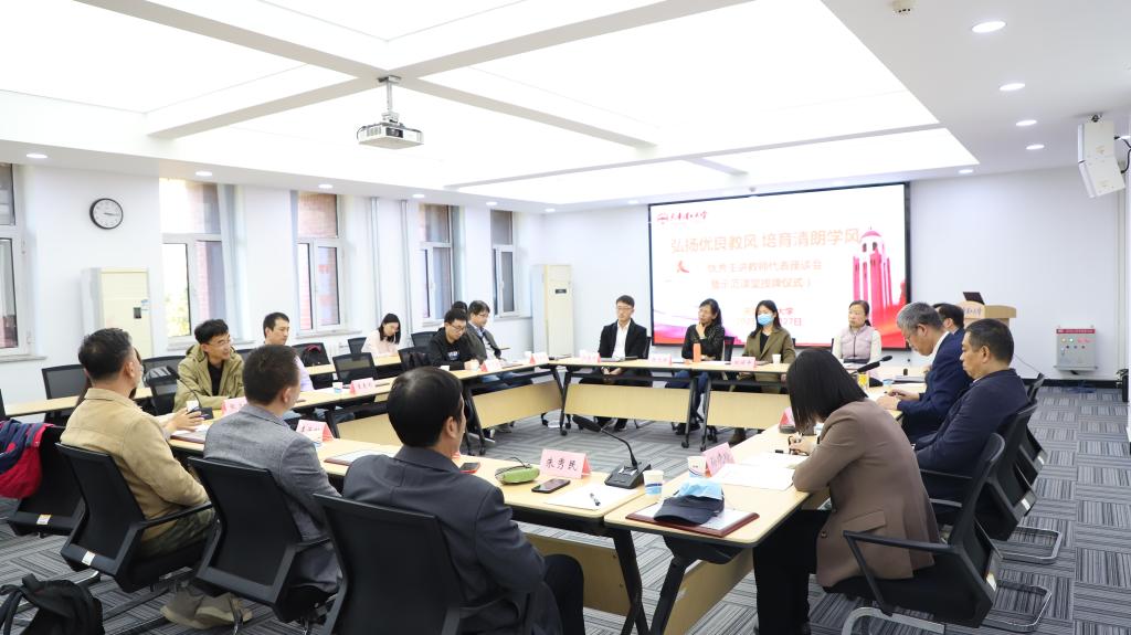 郑清春认真听取发言,充分肯定了优秀主讲教师们在教育教学、人才培养等方面的突出贡献。他表示,以优良党风带教风端学风,扎实开展教风学风建设活动,是学校党委面向长远,为全面贯彻党的教育方针,贯彻落实立德树人根本任务,实现学校内涵式发展做出的重大部署。此次建设“示范课堂”,旨在引领青年教师提高教育教学水平,促进学生主动融入课堂、参与教学互动,形成教学相长、共同进步的良好局面。各部门要不断总结经验做法,有效宣传推广优秀成果,长期坚持,常抓不懈。