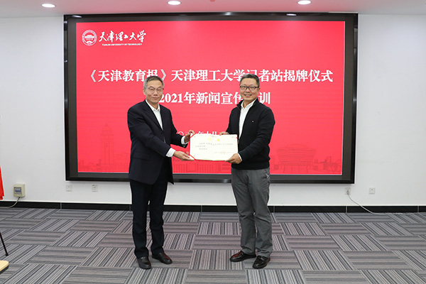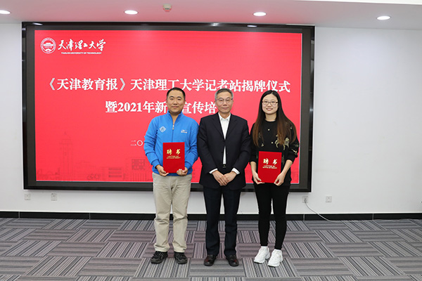 揭牌仪式上,双方签署共建协议,刘延军和杜长有共同为《天津教育报》新葡萄AMG官方网站记者站揭牌,聘请刘延军担任新葡萄AMG官方网站新闻中心特聘导师,刘佳、刘东岳为《天津教育报》新葡萄AMG官方网站记者站指导教师。
