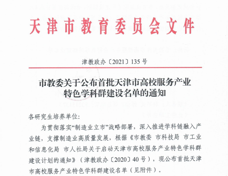 学校和入选首批建设名单的4个学科群将继续以习近平新时代中国特色社会主义思想为指导,深入贯彻习近平总书记对教育工作的重要指示和全国研究生教育会议精神,紧密对接我市“1+3+4”现代工业产业体系,增强学科间的交叉融合,促进学科建设与行业产业协调融通,完善需求导向的人才培养模式,将学科建设链、人才培养链、科技创新链与产业发展连紧密对接,加快形成更加开放、卓有成效的学科建设机制,确保高质量完成《天津市高校服务产业特色学科群建设任务书》中各项建设任务,为打造先进制造研发基地、推动天津市高质量发展贡献力量。
