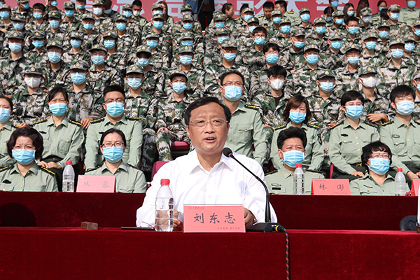 校党委书记刘东志发表了热情洋溢的讲话,他充分肯定了参训人员的训练成果,高度评价了本次军事技能训练的育人效果。他寄语同学们要砥砺奋斗,树立家国情怀,以军训为起点,把人生的小我融入到国家发展、民族进步、人民幸福的大我之中,明确“为什么出发”,又“因什么而奋斗”,踏踏实实走好脚下每一步,在接续奋斗中展现“00后”的使命与担当;要严于律己,以新时代军人为榜样,自觉遵守校纪校规,将主要精力投入到学习之中,在教风学风建设年中,深入思考“为谁学、学什么、怎么学”,不断丰富知识储备,强化实践能力,努力做到德智体美劳全面发展,让青春年华更加绚丽多彩;要乐观豁达,积极调整心态,直面挑战,真正理解“重德重能、求实求新”的校训精神和“求真务实、艰苦奋斗、开放包容、创新进取”的新葡萄精神,做无愧于祖国、无愧于时代的新葡萄青年。