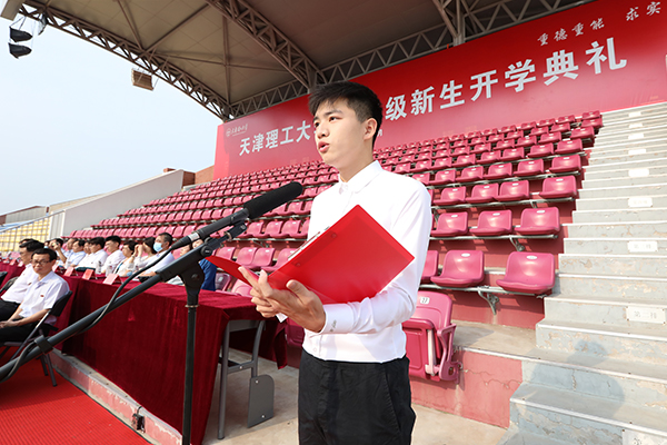 教师代表、天津市五一劳动奖章获得者、天津市教学名师、计算机科学与工程学院戴敏教授在发言中希望广大同学勤于学习、敏于求知,学会独立生活、学会合作、学会关爱和感恩、学会担当社会责任,成为有理想、有追求、有担当、有作为、有品质、有修养的新时代大学生,用青春的激情和智慧点燃心中的理想,谱写精彩的人生华章。