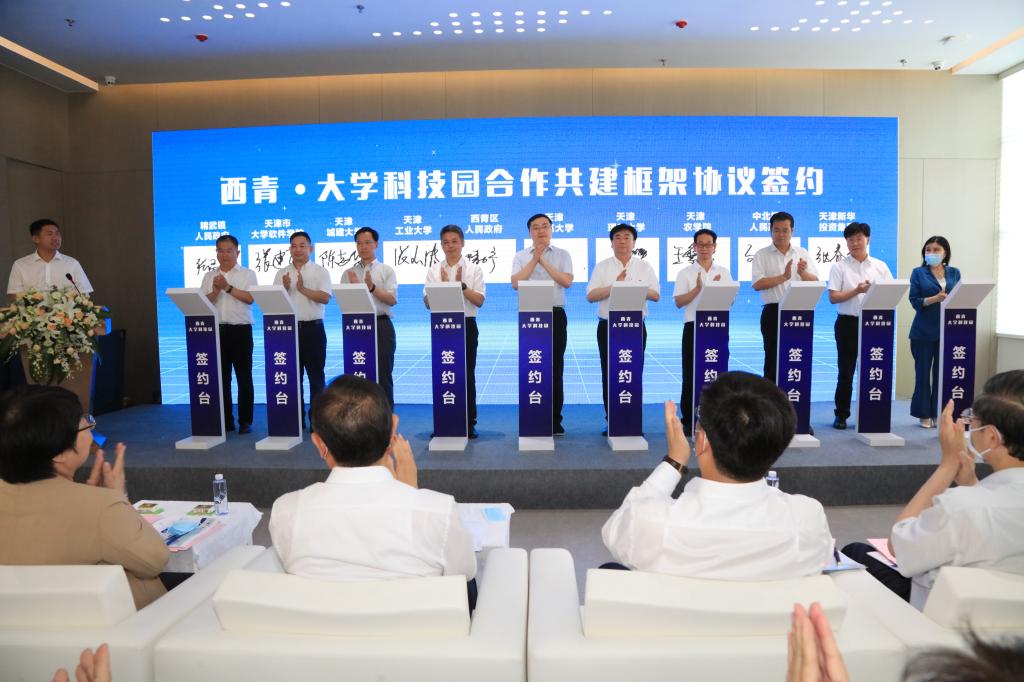 7月5日下午,西青大学科技园合作共建框架协议签约暨开园仪式在精武镇新华国际大学科技园举行。校长杨庆新出席仪式,副校长陈胜勇代表学校签约。