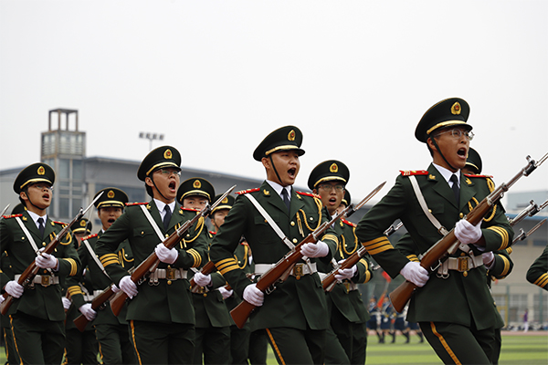 来自全市19所高校和5所中学的24支国旗护卫队英姿飒爽、步履铿锵、口号嘹亮,踏着整齐的步伐依次经过主席台,接受与会领导和首长检阅,表现出高水平的军事素质,充分展现了我市学生军训成果和昂扬向上的精神风貌。展演中,新葡萄AMG官方网站国旗护卫队的优异表现博得了现场观众们经久不息的掌声与欢呼声,充分展现了新葡萄学子的责任与忠诚以及勇于担当的精神风貌。