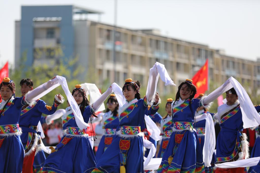 开幕式上,“双育”工作坊教师代表、国际标准舞社和各学院的同学们表演的《少年》舞蹈美轮美奂,精武社成员的《精武风云》气壮山河,校工会和体育教学部组织的女教职工广场舞表演的《各族儿女心向党》充满活力,来自各民族的同学共同带来的藏族舞蹈《雪域踏歌》也给全场师生带来精彩绝伦的视听感受。