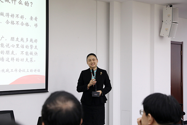 此次培训邀请天津市社会主义学院副教授李雯作专题辅导,她以《学习解读〈中国共产党统一战线工作条例〉》为题,紧密结合习近平总书记关于加强和改进统一战线工作的重要思想,围绕《条例》修订的背景、过程和意义,《条例》的结构和主要内容,《条例》修订的特色亮点三个方面进行了深入浅出的解读。