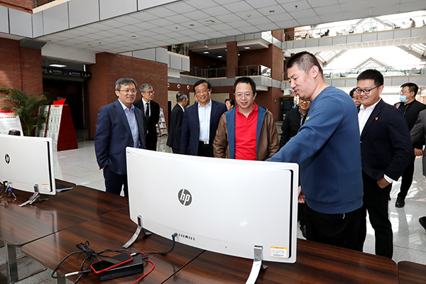 周鸿祎一行在图书馆的二楼展厅听取了新葡萄关于互联网安全与信任生态体系的研究汇报,并就目前的研究进展进行了交流。周鸿祎就区块链、隐私计算等方面的技术研发、人才培养、科技成果转化等情况进行详细的询问,并结合360集团当前在区块链领域的业务需求和应用落地进行了深入探讨。