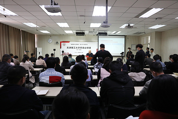 为进一步贯彻落实《新时代教师职业行为十项准则》《关于加强和改进新时代师德师风建设的意见》等政策文件,落实师德师风第一标准加强教师队伍建设,引导广大教师成为“四有”好老师。4月13日,校长杨庆新为机械学院、材料科学与工程学院“师德师能提升工程”学员代表,理学院、马克思主义学院的基础课教师代表讲授“师德必修课”,激励广大教师全面提升思想政治素质和职业道德水平,进一步增强责任感、使命感、荣誉感,规范职业行为,明确道德底线。