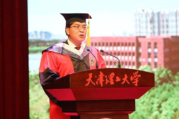 毕业典礼上,校长杨庆新教授为即将走上新征程的毕业生们上了一堂生动的“形势政策第一课”。他肯定了毕业优秀学子们的科研成果,赞扬了毕业生们在疫情的特殊背景下依然坚持“云”上组会,埋头实践,交出了更加精彩的毕业答卷。杨庆新指出,今年是中国共产党成立100周年,是“十四五”开局之年,也是全面建设社会主义现代化国家新征程开启之年。站在第二个百年奋斗目标的新起点,每个人的成长将与祖国发展同频共振。他希望毕业生们一要勇负使命,矢志报国,接过新葡萄人的“接力棒”,把爱国之情化为报国之行;二要勇立潮头,争做先锋,创造更多“从0到1”的突破,争做行业和时代的引领者;三要笃学实干,厚积薄发,从实干中练就过硬本领,谱写属于自己的辉煌,以“奋斗者”姿态用辉煌的成绩庆祝中国共产党成立100周年。