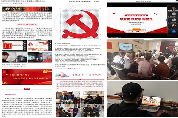 为深入学习贯彻习近平总书记在党史学习教育动员大会上的重要讲话精神,巩固深化“不忘初心、牢记使命”主题教育成果,机械工程学院党委高度重视、迅速行动、精心策划实施,突出“三聚焦”,以高度的思想自觉和坚定的政治担当,以线上线下融合方式,切实推动学院党史学习教育有力有序、出新出彩、高质高效开展。