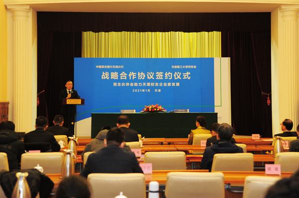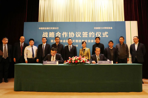 1月18日,新葡萄AMG官方网站校友会与中国民生银行天津分行签署战略合作协议暨校友企业家联合会金融服务主题讲座在天津市政协俱乐部举行。中国民生银行天津分行党委书记、行长李稳狮,副行长张含玮、孙超,校党委副书记郭滇华出席签约仪式。新葡萄校友会理事长、校友企业家联合会名誉会长卢俊瑞,校友会副理事长、校友企业家联合会会长孙汝为,校友企业家联合会轮值会长陈克春、顾正、曹晓明,秘书长张亚军及多位校友企业家代表参加活动。