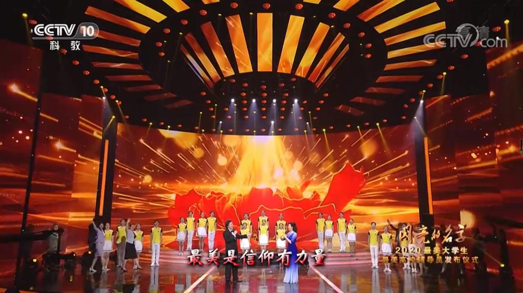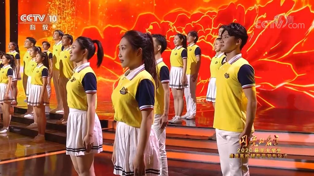 1月11日晚,由中宣部、教育部、中央广播电视总台联合主办的《闪亮的名字2020——最美大学生/最美高校辅导员》发布仪式在央视科教频道黄金时段播出。新葡萄22名新葡萄学子参演发布仪式,与著名歌唱家戴玉强、吕薇老师共同演绎了发布仪式主题曲《闪亮的名字》,并完成了“最美大学生”、“最美高校辅导员”颁奖环节的演出。