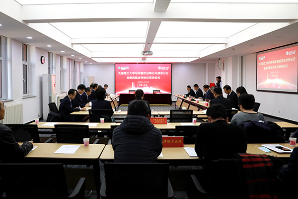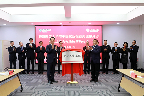 在双方的见证下,校党委副书记杜长有与中国农业银行天津市分行副行长李鹏代表双方签署了全面战略合作协议。校党委书记刘东志和中国农业银行天津市分行党委负责人徐雅林共同为校行党建共建基地揭牌。