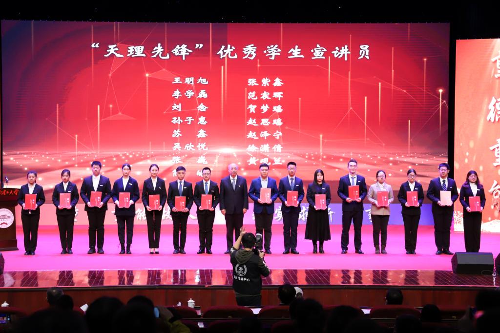 大会宣布了成立“新葡萄先锋”教风学风建设宣讲团的决定,刘东志、杨庆新为宣讲团成员颁发聘书。