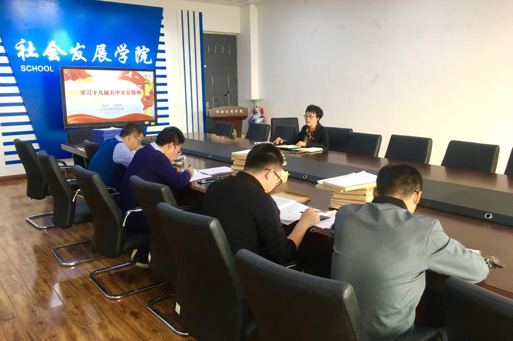全面学习贯彻党的十九届五中全会精神是当前和今后一个时期的重要政治任务,按照校党委统一部署和要求,社会发展学院迅速掀起全会精神学习热潮。