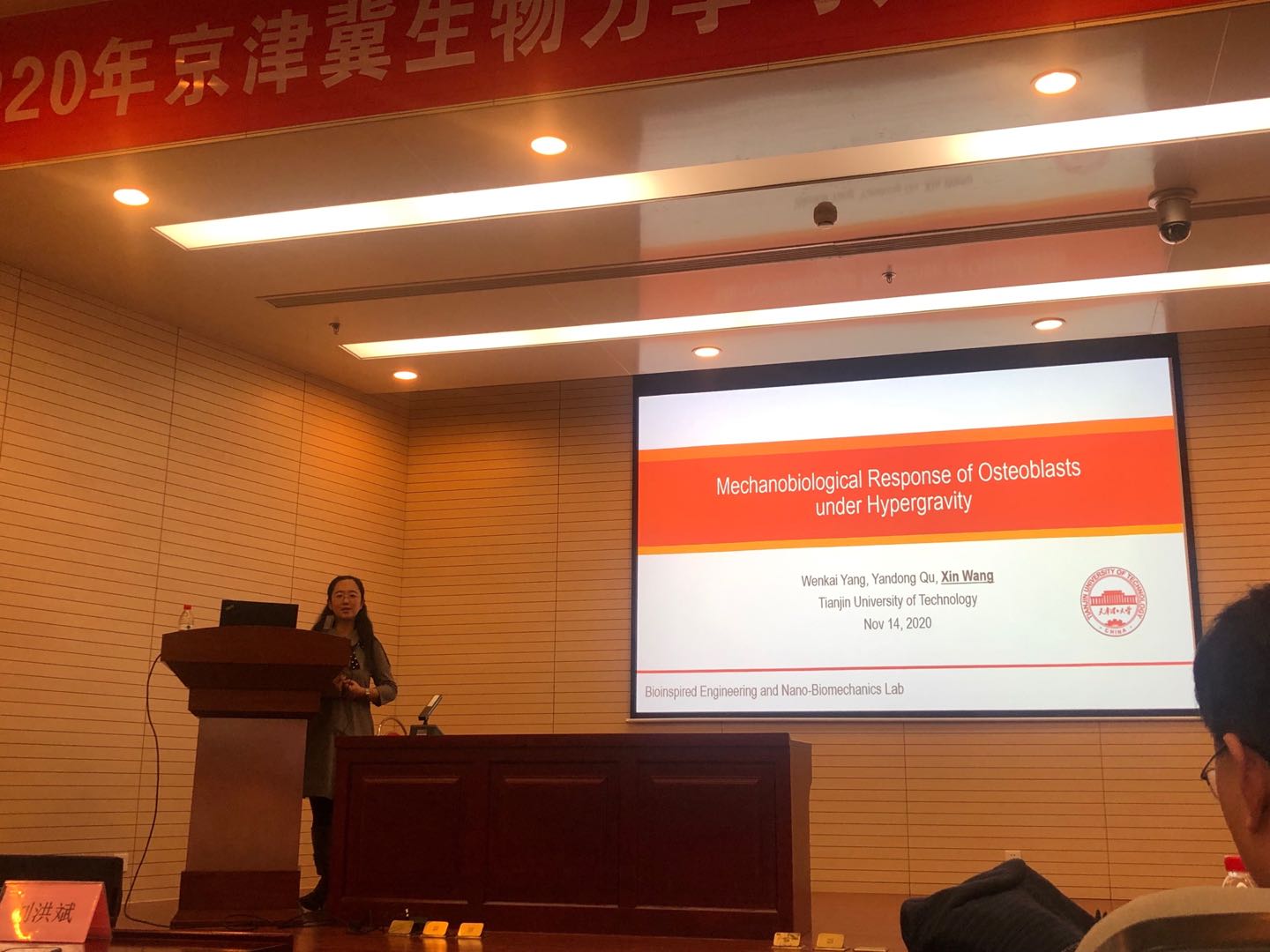 机械工程学院学院党委委员、生物力学学科教授张春秋主持此次会议。青年教师王鑫做了题为“细胞在高加速度加载条件下的力学生物学响应”报告,分享科研工作经验。学院组织师生党员全程参加此次会议并开展会务工作。