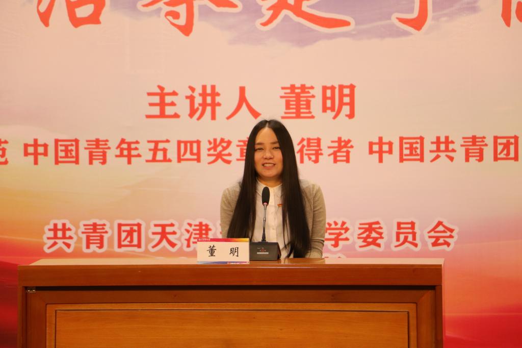 董明是全国道德模范、中国青年五四奖章荣誉称号获得者,北京市青年五四奖章标兵,四川省抗震救灾模范。多次在北京奥运会、北京残奥会、上海世博会、广州亚运会等重大赛会上志愿服务。她成立的“武汉软件工程职业学院相信爱公益”“武汉青联董明爱心基金”,为青年学生和留守儿童助学圆梦,先后帮助了7000多个困难群体,帮助300多个绝望的生命走出阴影。“走到今天最大的骄傲是什么?”,“你为自己的人生准备了什么?”“你想为自己的人生和青春留下怎样印记?”董明用两个小时的时间,以“不要让生活夺走了你的信仰”为题,讲述了自己受伤后在各界的支持和帮助下,重返校园实现求学梦想、留校任职从事育人工作、融入社会开展志愿服务的成长经历,表达了“初心如磐”爱党、爱国、爱人民的坚定信念,“不懈努力”坚持、拼搏、奋斗的青年选择,“使命在肩”担当、有为、奉献的人生追求。