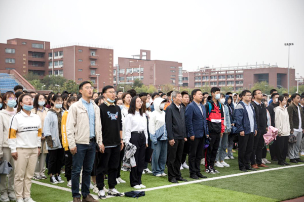 10月1日,细雨蒙蒙。学校在体育场举行庄严的升旗仪式,庆祝中华人民共和国成立71周年。校党委副书记杜长有出席,来自全校各学院的师生代表参加升国旗仪式。
