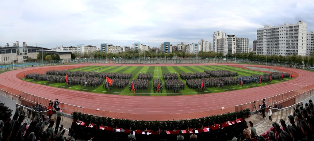 9月29日,新葡萄AMG官方网站2020级本科生军事技能训练成果汇报暨总结表彰大会在体育场举行。校领导刘东志、杨庆新、郭滇华、杜长有、魏东、张继东、陈胜勇,天津警备区学生军训工作办公室主任辛维刚、南开区人民武装部部长薛铁军出席大会。大会由校党委副书记杜长有主持。